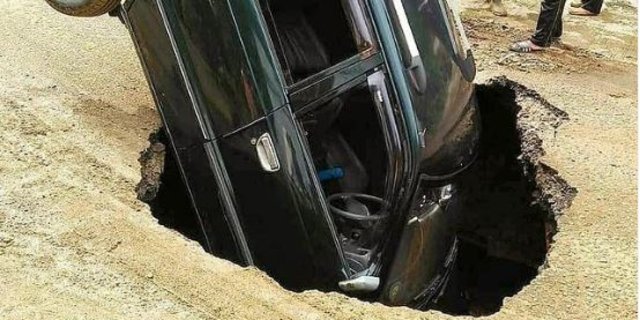 Usai menabrak, mobil terbanting hingga ringsek menggasak pohon di tepi jalan.